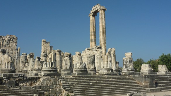The temple of Didyma – a real surprise located in the centre of sprawling Didim amongst tumbled down farmhouses, and sheds-come souvenir stalls. A beautiful, and surprisingly huge temple, with informative information boards & no crowds.