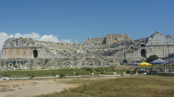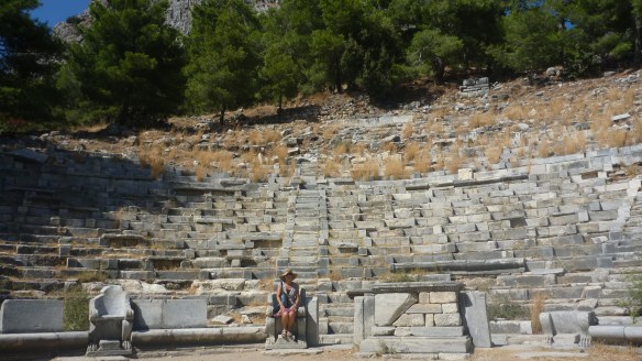 Not far from Miletus is Priene, a lovely ancient site situated on a plateau overlooking the plains has a small intimate amphitheatre – note the lion’s feet carved seats (for important people) in front row. As this theatre doubled for the oratorium the waterclock ensured that local politicians kept to their time limit.